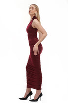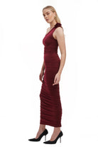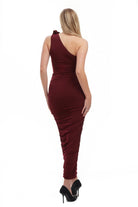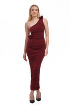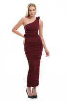 Elle Rose Ruched One Shoulder Maxi Dress - Burgundy