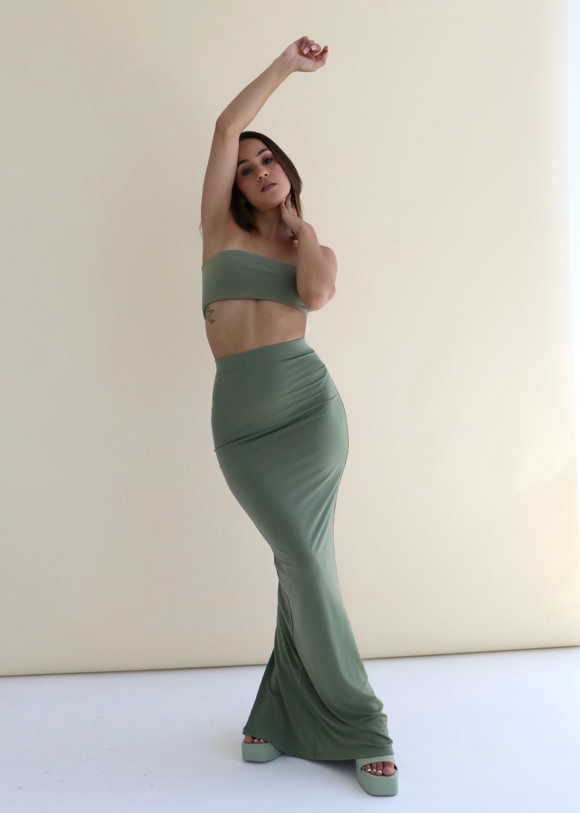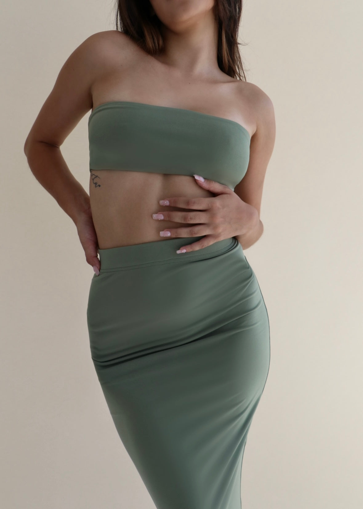 Adorn your summer silhouette in our form-hugging Sephora Bandeau, perfectly paired with the Sephora Skirt in Olive. Wear her dressed up with heels or down with your favourite summer accessories & sandals. Express your sensuality in a tone of Burgundy, Black, Stone, Olive and a Black Shimmer.