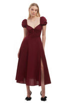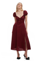 For girls who wanna be girls who wanna be sexy. Myrah's refreshing allure transports us to daydreams of garden parties and summer getaways. She features a fitted bodice, sculpting a flawless hourglass silhouette, while the gently shaped cups ensure a comfortable and secure fit. Adding to the playful and airy charm of Myrah are the enchanting puff sleeves & the side thigh split introduces a flirtatious element, teasing with a subtle glimpse of thigh as you gracefully stroll.