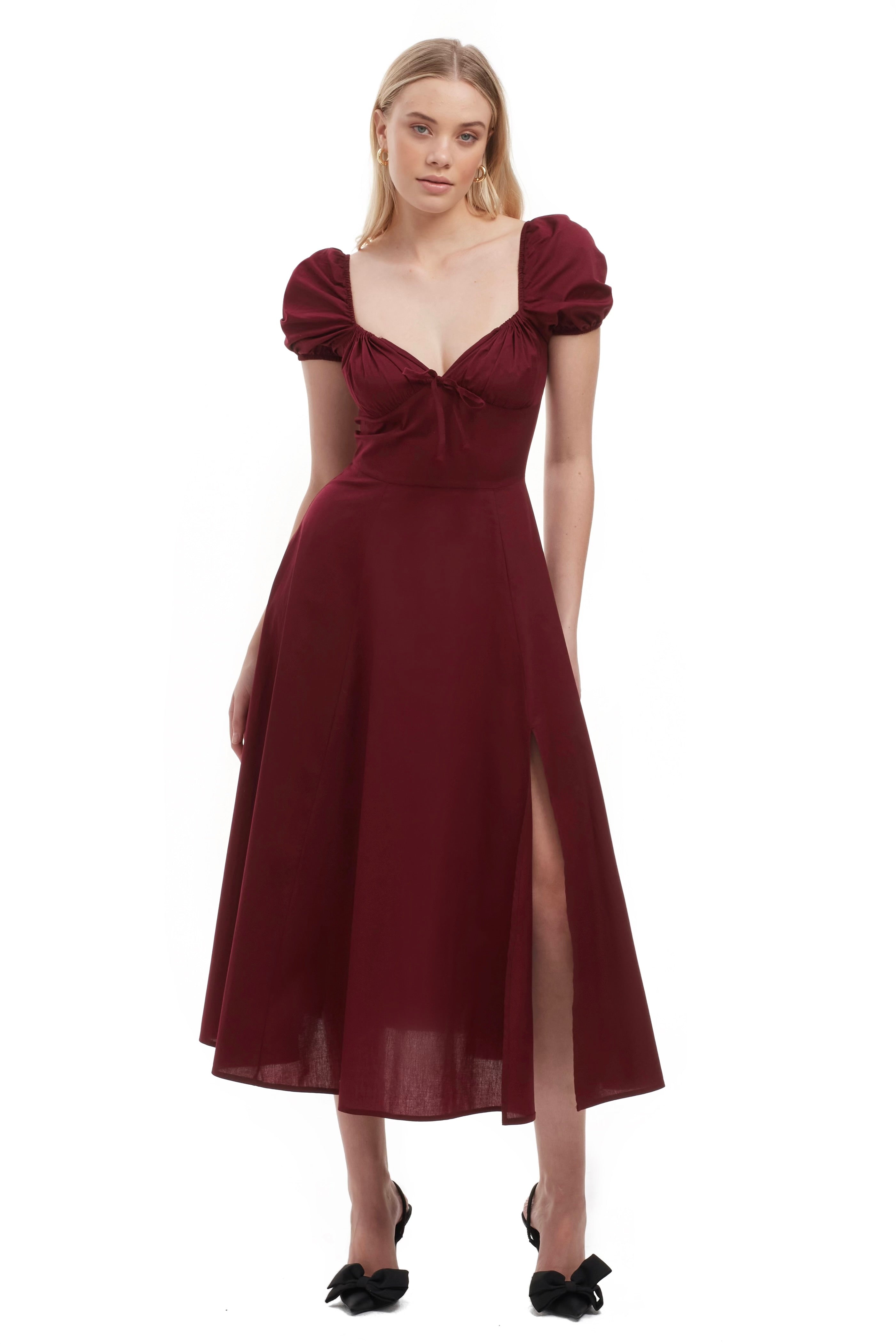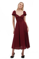 Introducing the new & improved Myrah Cherry Red Midi Sundress, now crafter in premium cotton fabric Available in the rich maroon shade as seen on our website.