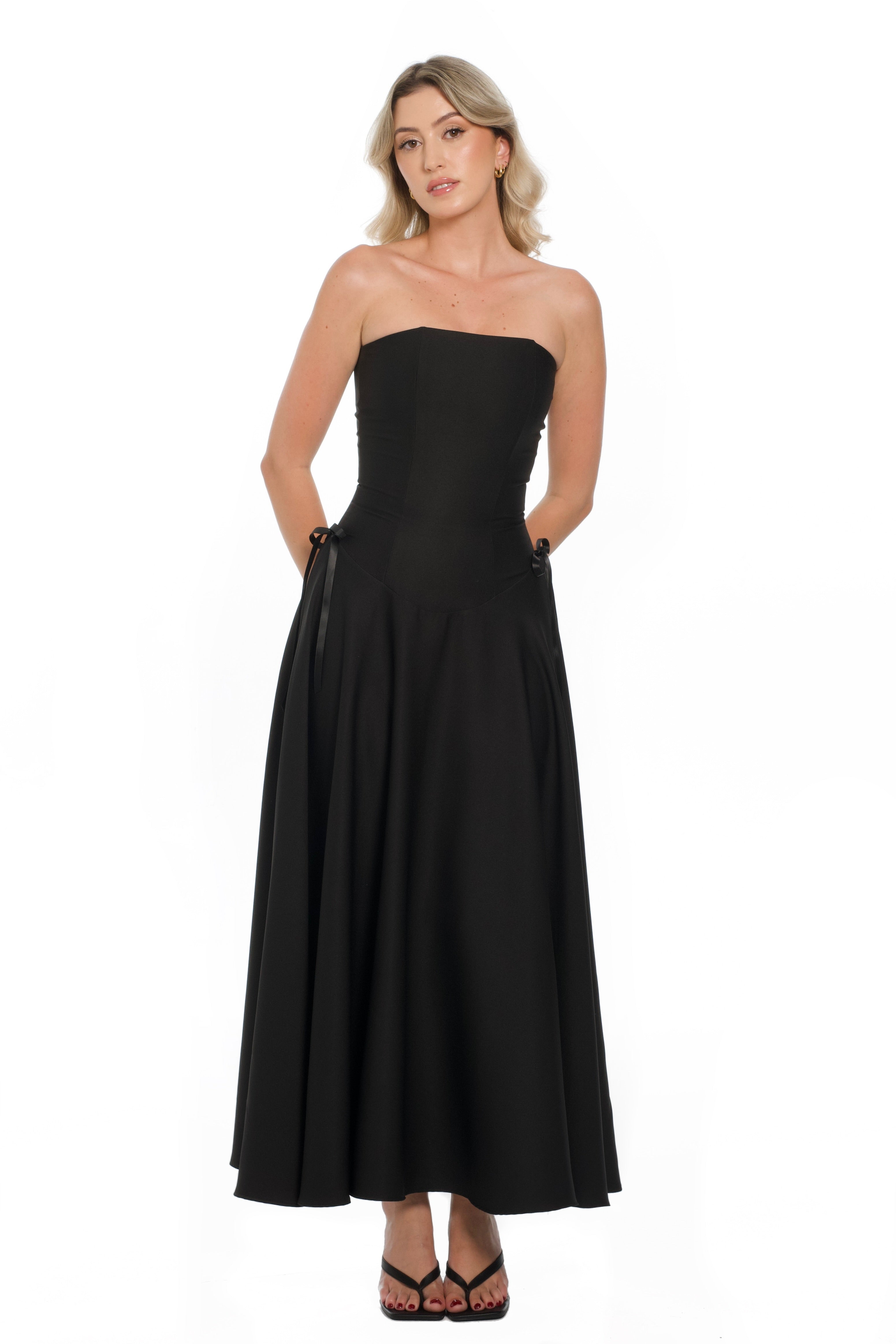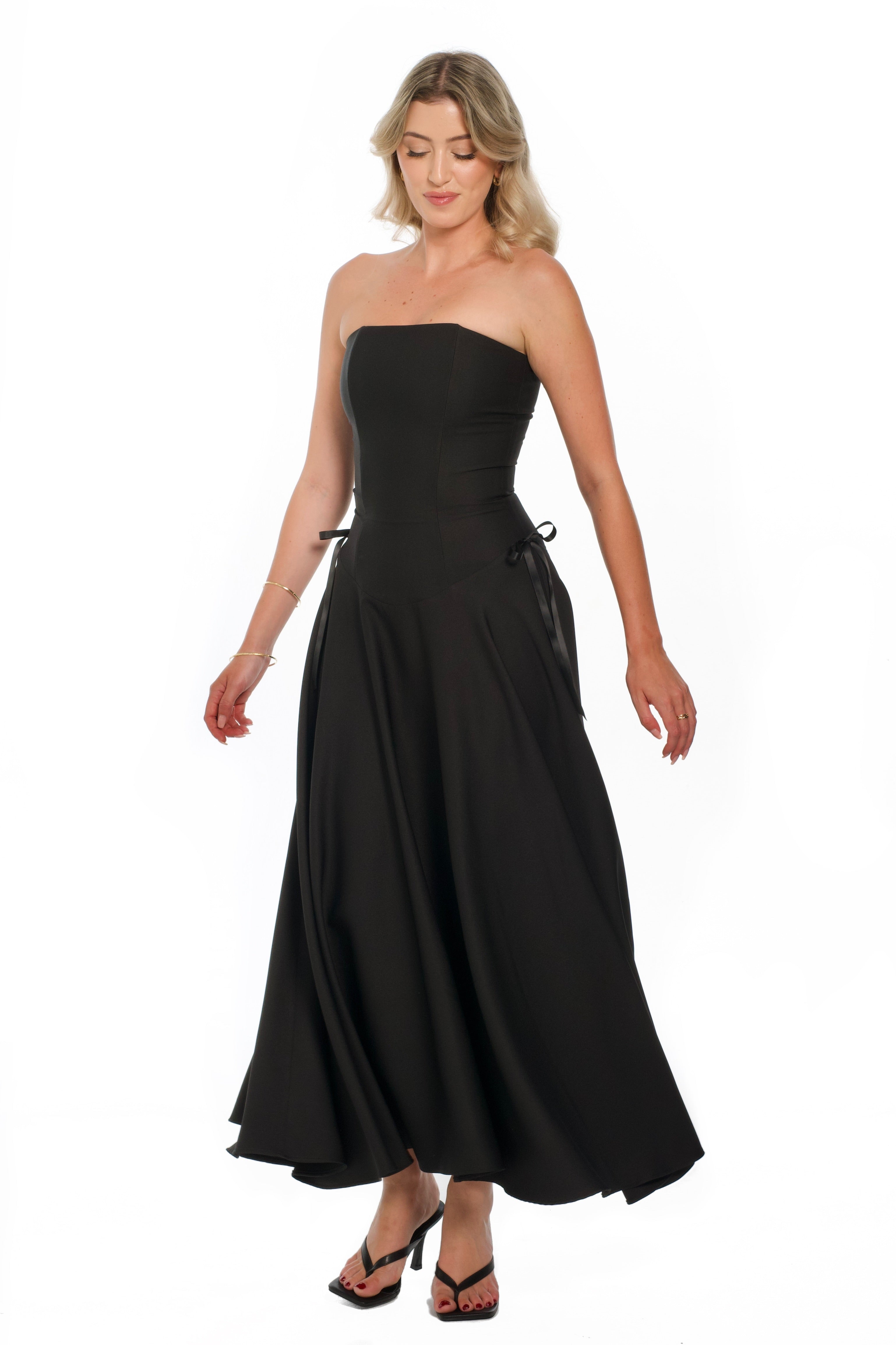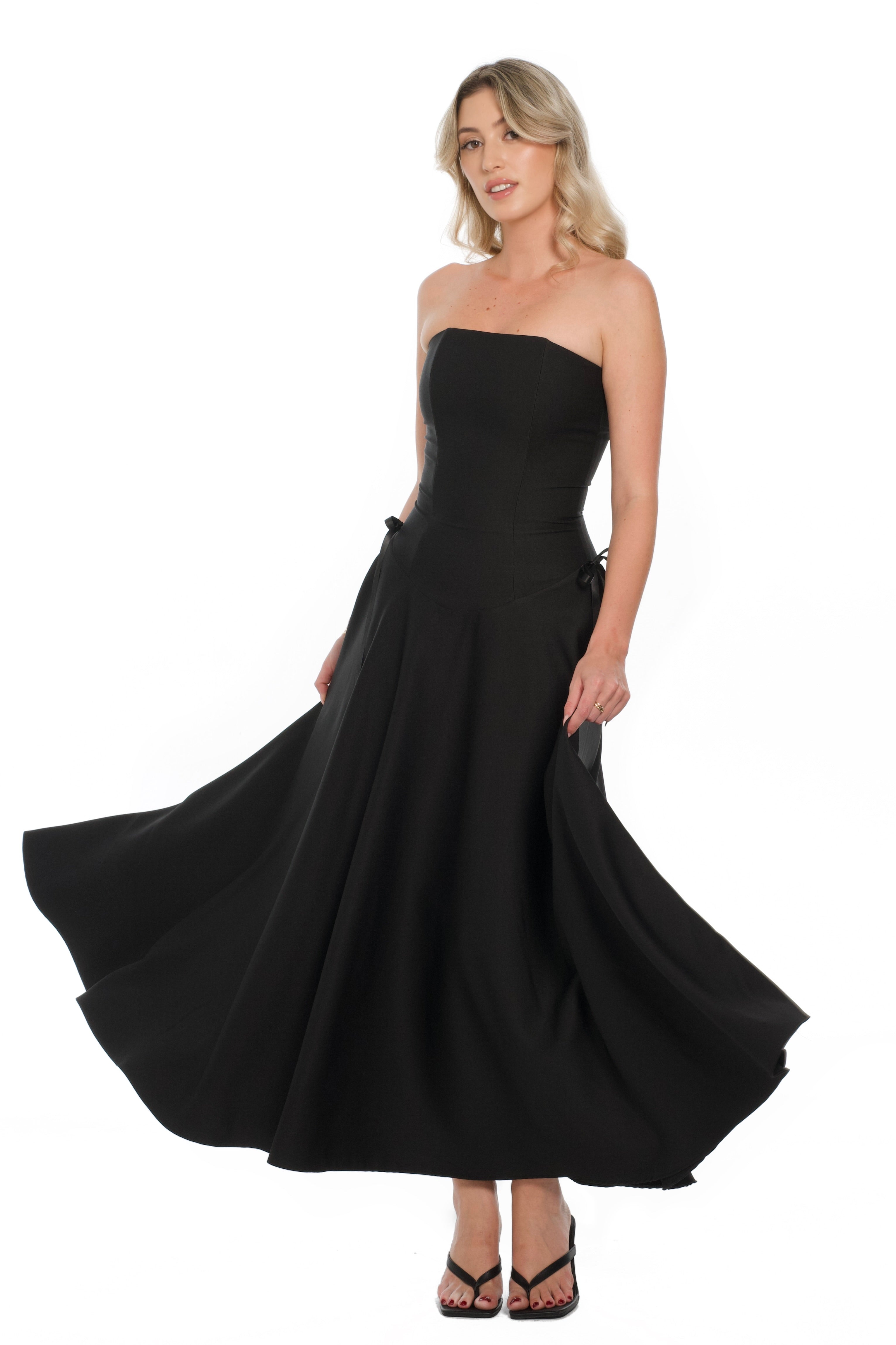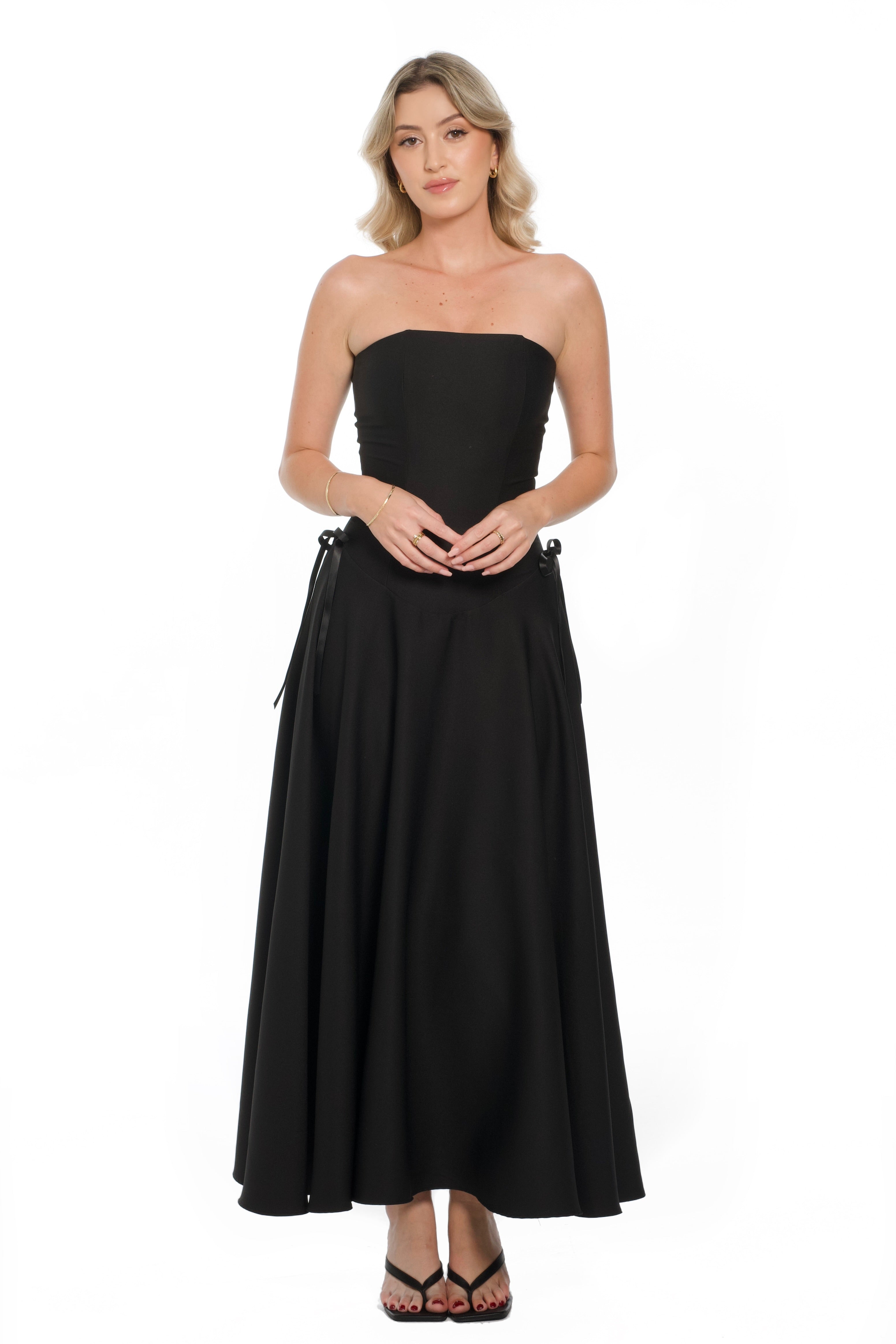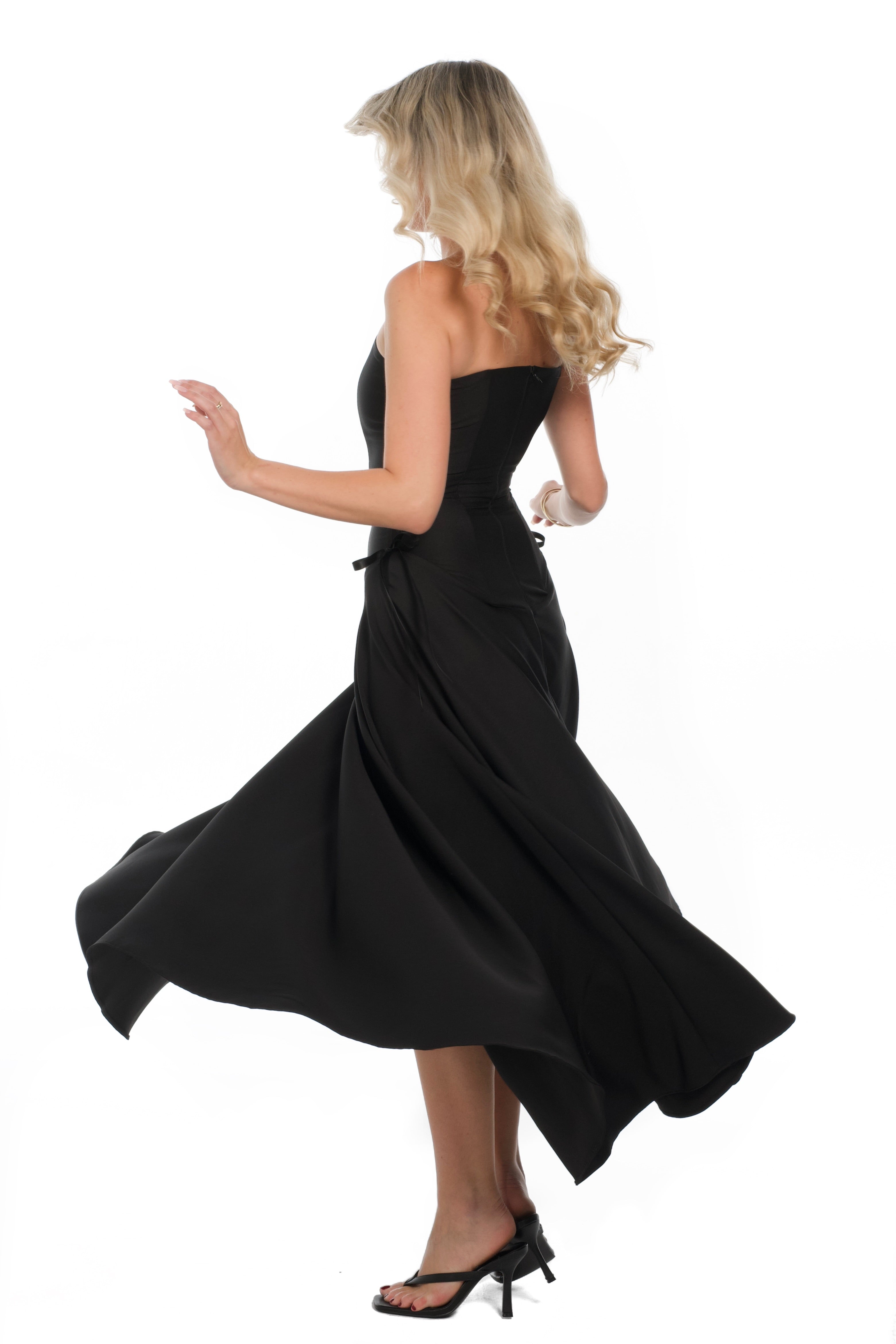 There’s something undeniably romantic about the Leigh Dress—a piece that whispers elegance with every movement. Designed for the woman who loves timeless beauty, it features a strapless, corset-like bodice sculpts and supports, enhanced by a fabric that offers just the right amount of stretch for comfort without compromising its structured elegance. The V-shaped waistline cascades into a dreamy midi skater skirt, creating a soft yet structured flow with every step.