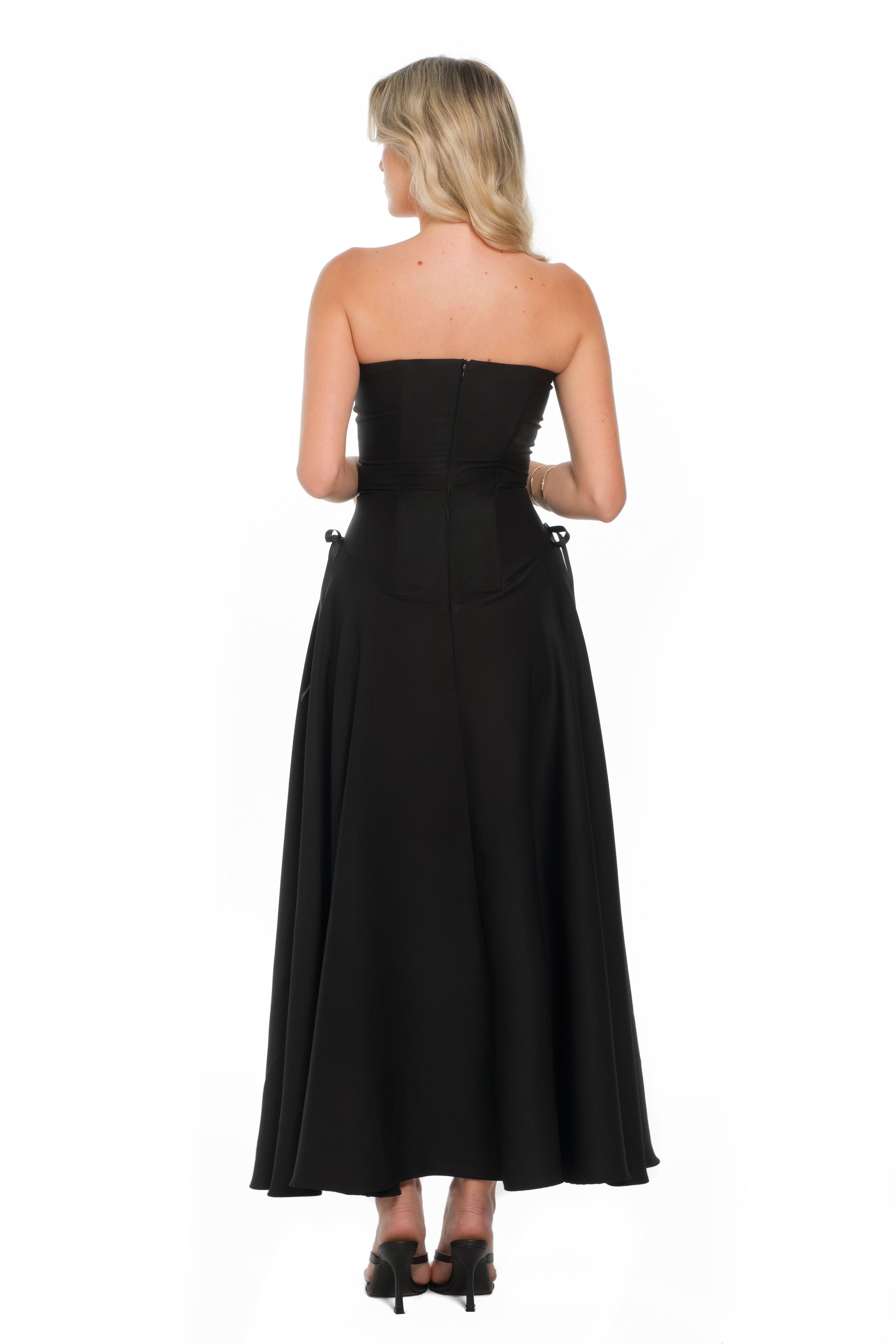 Delicate bows rest gently on each hip, a signature detail that adds a touch of femininity—like the final flourish of a love letter. Whether worn under the golden glow of the afternoon sun or by candlelight on an intimate evening out, the Leigh Dress is made for moments that linger in memory.