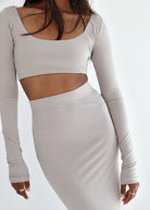Perfectly paired with the Sephora Skirt in Stone, this crop top is a versatile addition to any fashion-forward wardrobe.