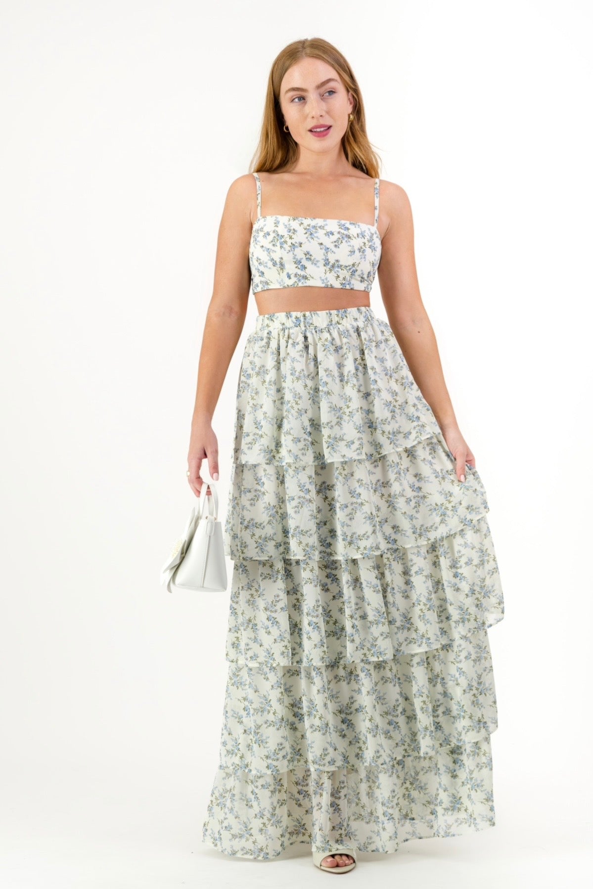 The Delilah Frill Skirt is light, feminine, and easy to wear. Designed in a soft floral print with cascading tiers, it creates beautiful movement while keeping the silhouette relaxed and flattering. The elasticated waistband offers comfort and flexibility, making it perfect for long summer days.