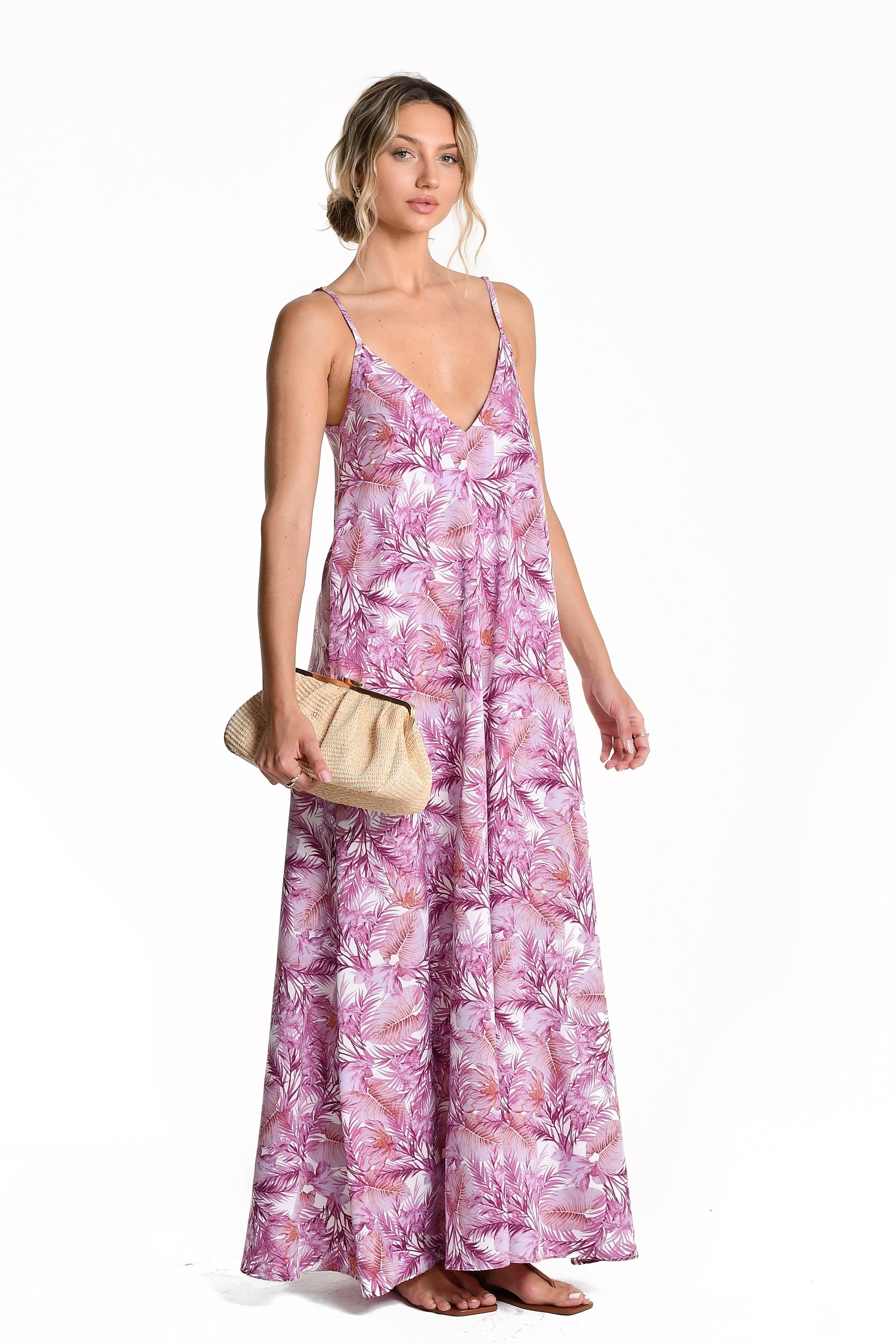 Embrace the warmth of the season with this summer must-have, designed to make you feel as radiant and carefree as the sun-kissed days it celebrates. The fluid design and sweeping length create an aura of elegance, making it a versatile choice for various social occasions. Whether you're strolling along the beach or attending a garden soirée, this dress is your go-to companion for both style and comfort.