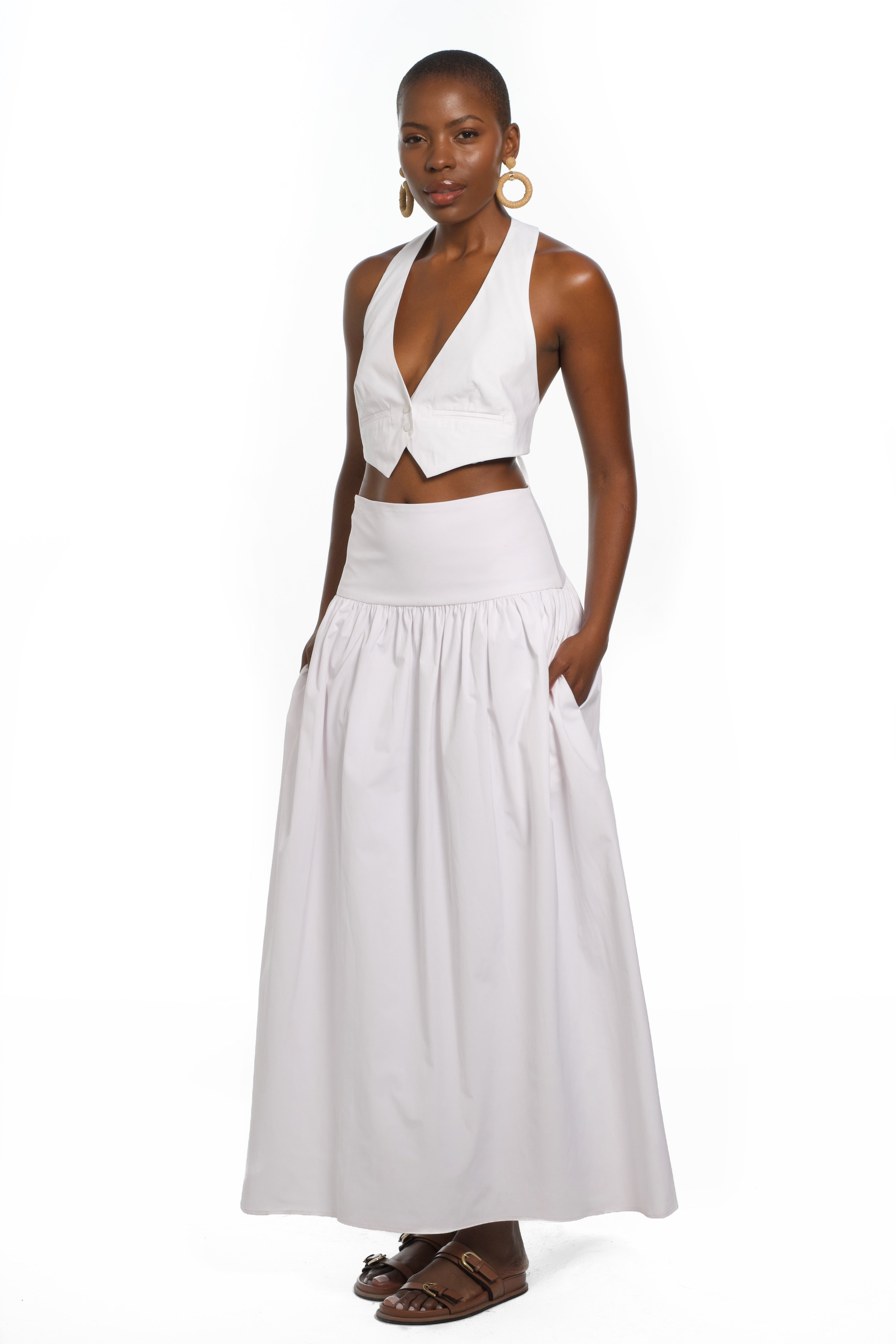 The Iris Maxi Skirt is effortless elegance, designed to move with you from sunlit mornings to starlit evenings. Crafted from breathable cotton, this skirt drapes beautifully, with a shirred waistband that flatters the waist while allowing for all-day comfort. The flowy maxi silhouette creates an air of grace, while hidden pockets add practicality without compromising on style. Finished with an invisible side zip for a seamless fit, this skirt is the perfect blend of beauty and function.