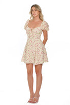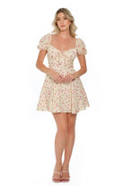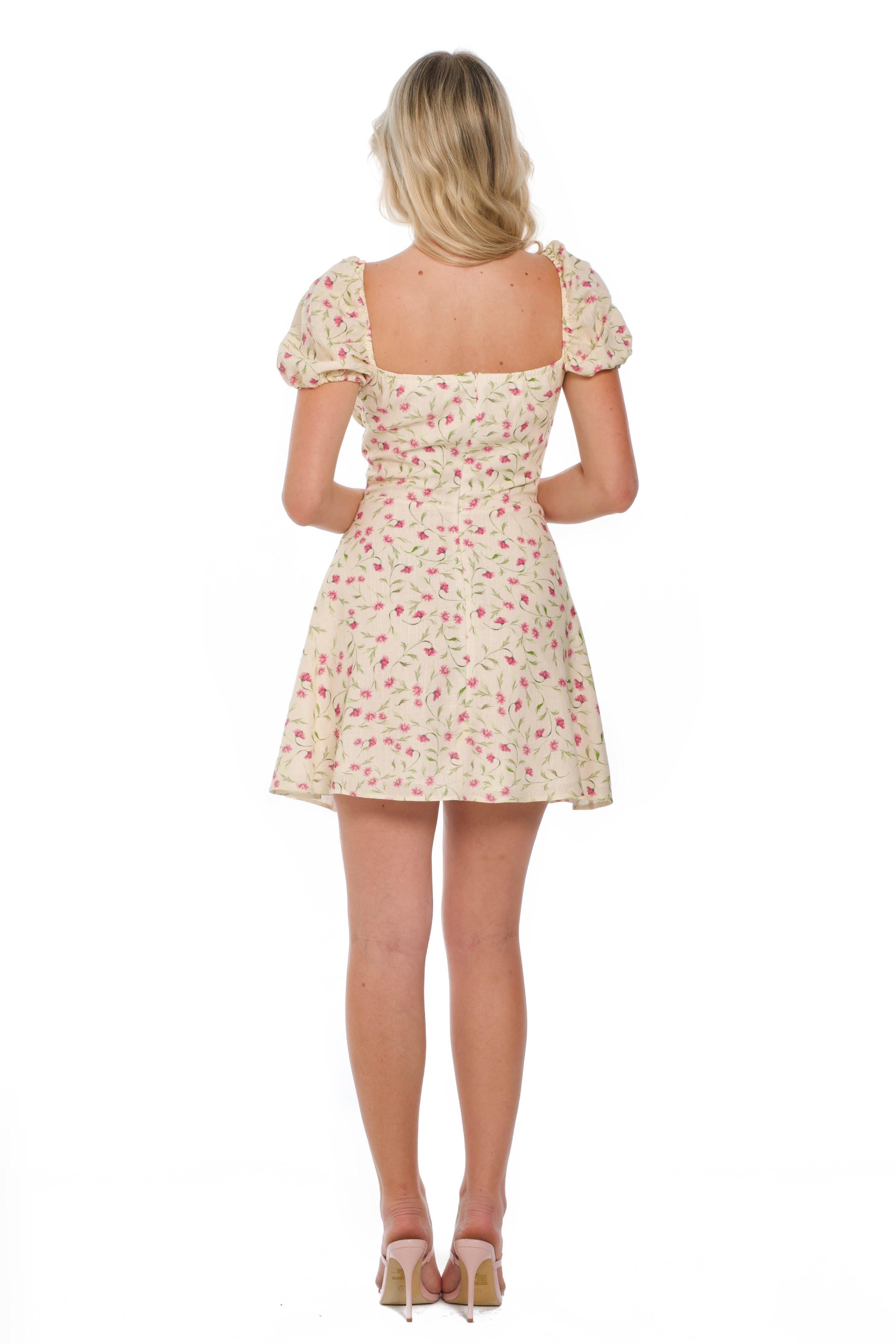 The fitted bodice gently hugs your curves, leading into a mini skirt that flared from the waist, creating a flattering silhouette that flows with grace and ease. The straight mid-back and center-back zip give the dress a polished finish, while the fully lined design ensures both comfort and elegance.