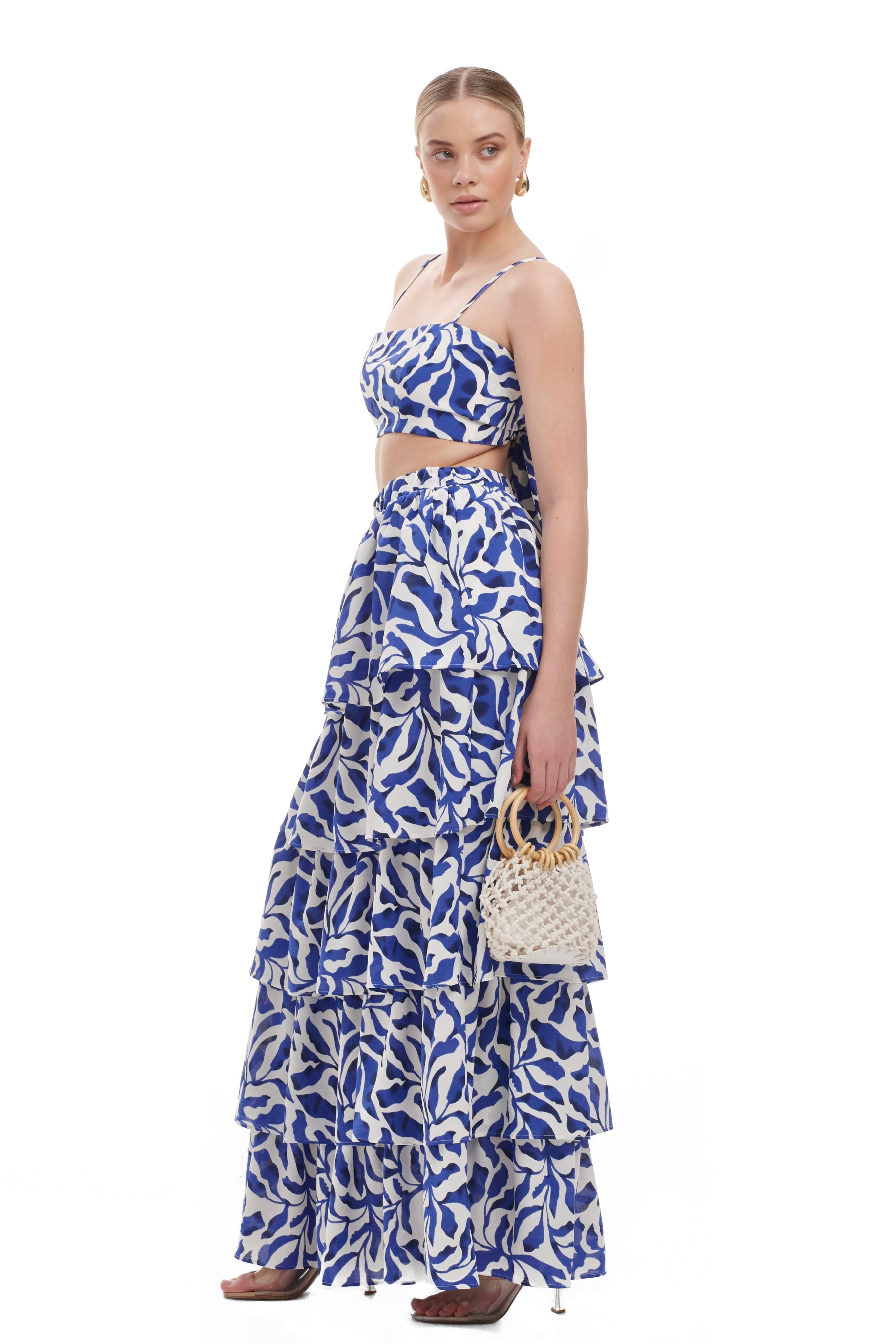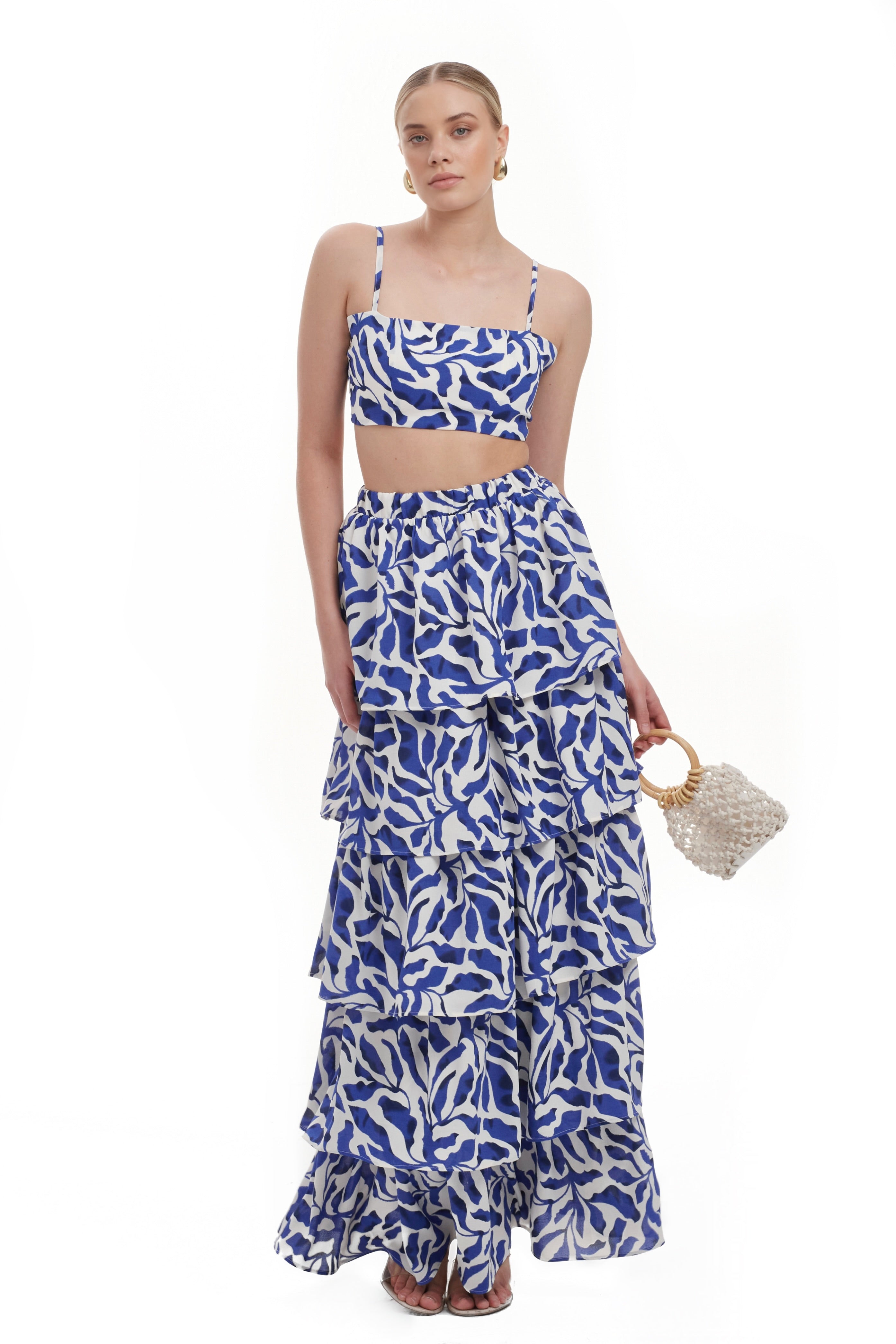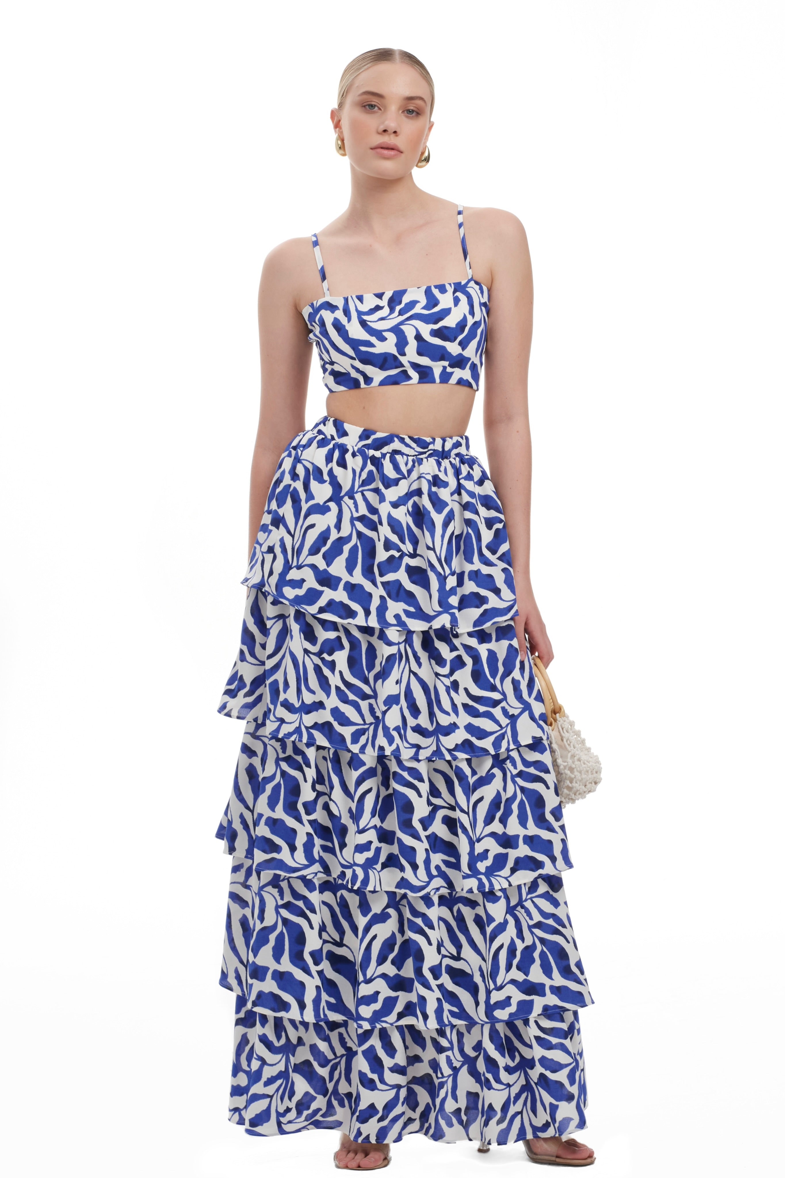 Introducing our Sienna Frill Skirt. Inspired by the vibrant charm of Santorini island, this set captures the essence of the crisp white buildings against the azure blue sea. The floral accents reflect the island's natural beauty and relaxed Mediterranean vibe, making it a perfect choice for embracing summer elegance.
