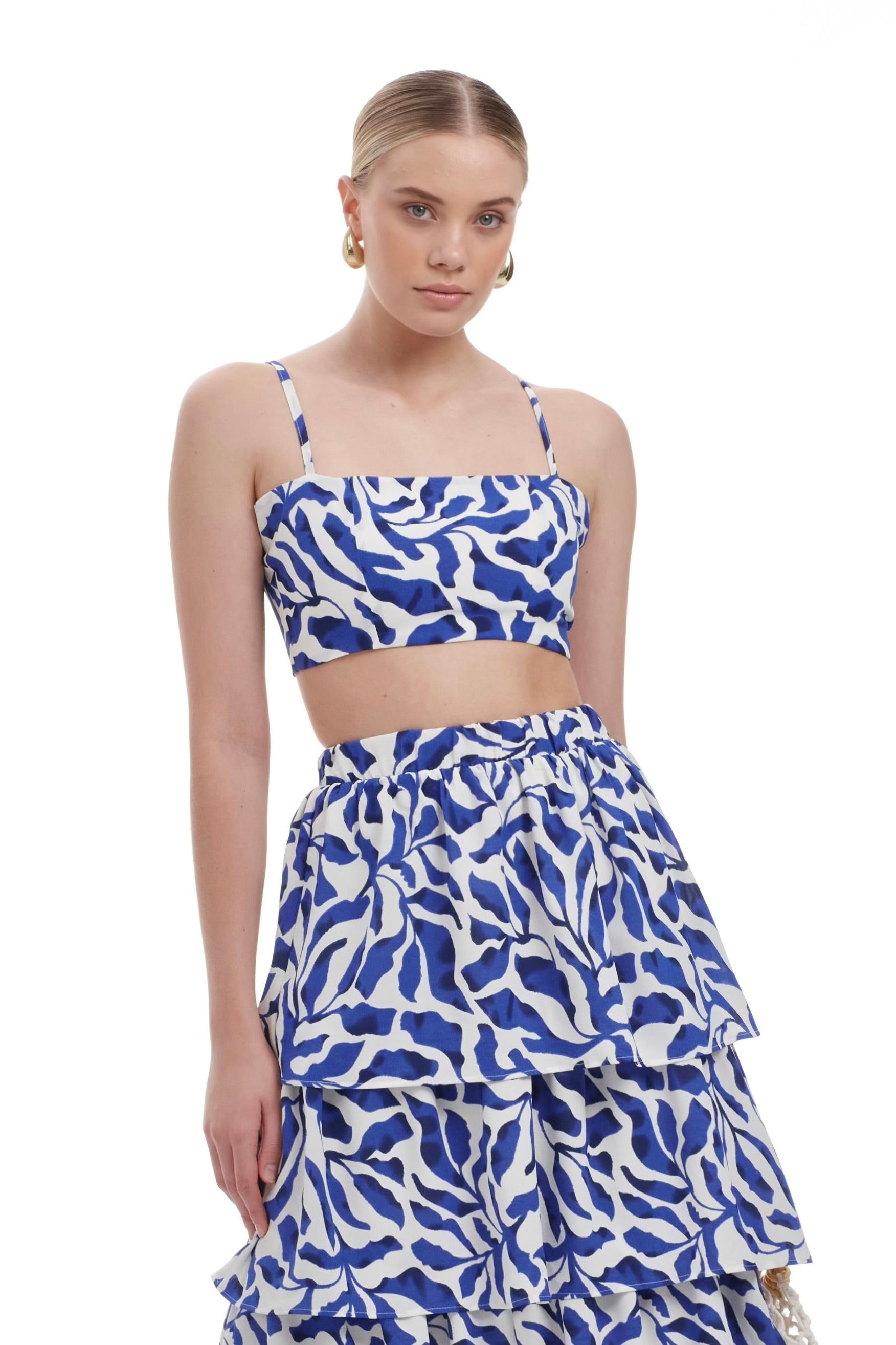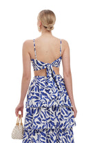 Complete your summer ensemble with our Sienna Bandeau, inspired by the vibrant charm of Santorini. Crafted from a blue and white floral print fabric, this bandeau exudes Mediterranean elegance. It features adjustable straps and tie details at the back, ensuring a comfortable and customizable fit. Whether lounging by the beach or exploring seaside cafes, the Sienna Bandeau adds a touch of relaxed sophistication to your summer wardrobe.